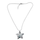 The pendant features a unique ribbed texture that catches and reflects light, enhancing its shimmering appeal. Set against a backdrop of sleek stainless steel, the star's surface is embellished with carefully placed stones that add a touch of dazzling brilliance.